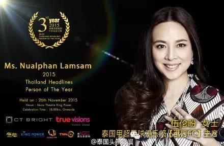 泰国女子足球队经理、泰国甲级足球联赛俱乐部【泰港FC】主席 伍伦盼 阁下,除了是泰国著名的成功女实业家之外还是泰国国家女子足球队经理,为泰国足球投入大量金钱时间和宣传,让泰国女足突飞猛进,她的付出让她成为泰国家喻户晓的传奇人物