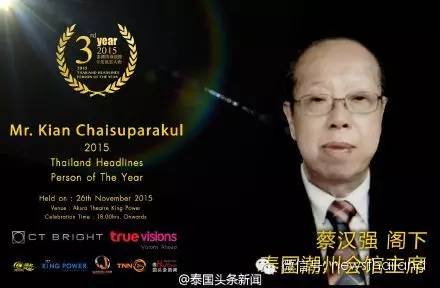 蔡汉强阁下,在商海历经数十年的拼搏,事业取得了令人钦慕的成就。同时领导潮州会馆,在兴办福利、推动社会经济繁荣、促进中泰亲善等方面做了大量工作,为泰华社会繁荣做出积极贡献,创下潮州会馆创会至今77年现金存款最多的一年。