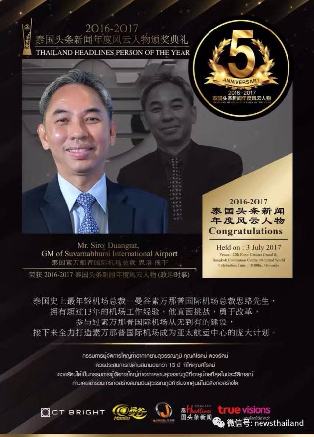 泰国史上最年轻机场总裁—曼谷素万那普国际机场总裁思络先生Khun Sirot,拥有超过13年的机场工作经验,参与过素万那普国际机场从无到有的建设,他直面挑战,勇于改革,接下来全力打造素万那普国际机场成为亚太航运中心的庞大计划。