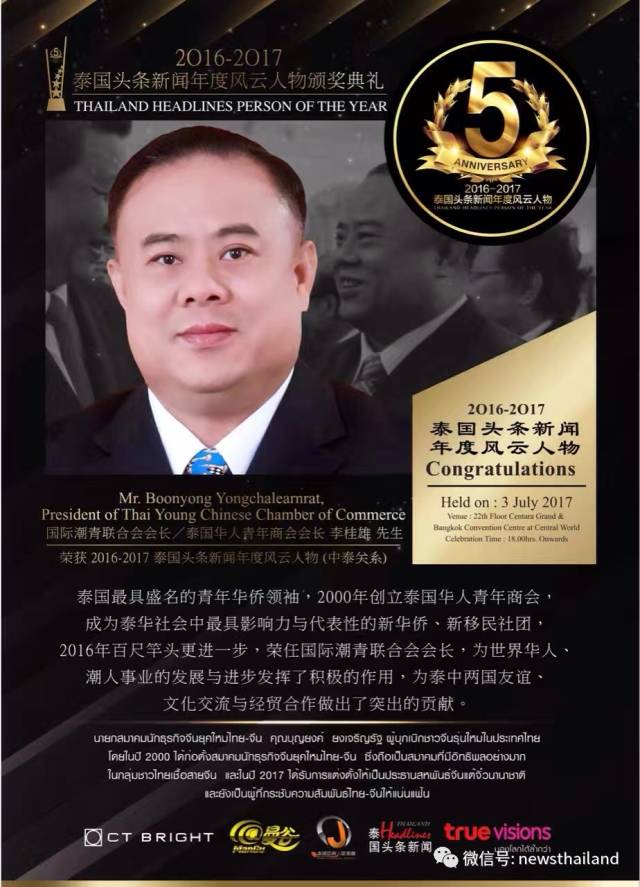 泰国最具盛名的青年华侨领袖,2000年创立泰国华人青年商会,成为泰华社会中最具影响力与代表性的新华侨、新移民社团,2016年百尺竿头更进一步,荣任国际潮青联合会会长,为世界华人、潮人事业的发展与进步发挥了积极的作用,为泰中两国友谊、文化交流与经贸合作做出了突出的贡献。