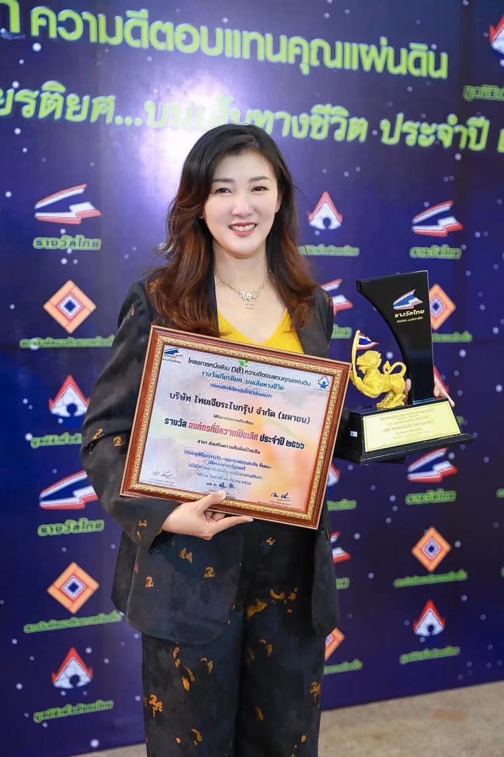 เมื่อวันศุกร์ที่ 24 กุมภาพันธ์ พ.ศ.2566 คุณจีจี้ หลุ่ย แซ่กั๊ว ประธานบริษัท ไทยเจียระไน กรุ๊ป จำกัด (มหาชน)ได้เข้ารับรางวัลเกียรติคุณ “องค์กรที่มีความเป็นเลิศ สาขาความสัมพันธ์ไทยจีน ปี 2566” จากโครงการหนึ่งล้านกล้าความดีตอบแทนคุณแผ่นดิน รางวัลไทย รางวัลเกียรติยศ บนเส้นทางชีวิต โดยมีพลอากาศเอก ประจิน จั่นตอง เป็นประธานในพิธี บริษัทจะมุ่งมั่นและเป็นพลังขับเคลื่อนความสัมพันธ์ ความร่วมมือระหว่างไทยจีนให้แน่นแฟ้นยิ่งขึ้น