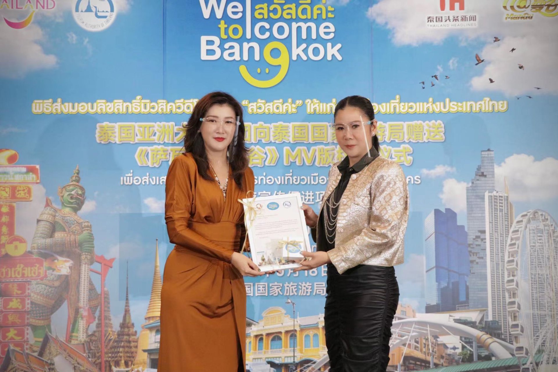 บริษัท ไทย เจียระไน กรุ๊ป จำกัด (มหาชน) นำโดย คุณหลุ่ย แซ่กั๊ว ประธานกรรมการบริหารใหญ่ บริษัท ไทยเจียระไน กรุ๊ป จำกัด (มหาชน) และผู้แต่งทำนองเพลงสวัสดีค่ะ พร้อมด้วย คุณอรทิพย์ ทัศนีย์ทอง ประธานเจ้าหน้าที่บริหารร่วม บริษัท ไทยเจียระไน กรุ๊ป จำกัด (มหาชน) และผู้ควบคุมการผลิตมิวสิกวิดีโอเพลงสวัสดีค่ะ , Mr. Zhong Muyue ผู้เขียนเนื้อร้องและร้องนำเพลงสวัสดีค่ะ และตัวแทนทีมงาน ได้เดินทางเข้ามอบลิขสิทธิ์เพลง "สวัสดีค่ะ Bangkok ยินดีต้อนรับสู่กรุงเทพมหานคร" ให้กับการท่องเที่ยวแห่งประเทศไทย (ททท.) โดยมีคุณฐาปนีย์ เกียรติไพบูลย์ รองผู้ว่าการด้านตลาดในประเทศ การท่องเที่ยวแห่งประเทศไทย (ททท.) ให้เกียรติเป็นผู้รับมอบอย่างเป็นทางการ ทั้งนี้ เพื่อฉายภาพให้คนทั่วโลกจับตามายังภาคการท่องเที่ยวไทย ที่เริ่มฟื้นตัวในทิศทางที่ดี ผ่านโครงการเปิดตัวมิวสิกวิดีโอเพลงใหม่ล่าสุด ณ การท่องเที่ยวแห่งประเทศไทย